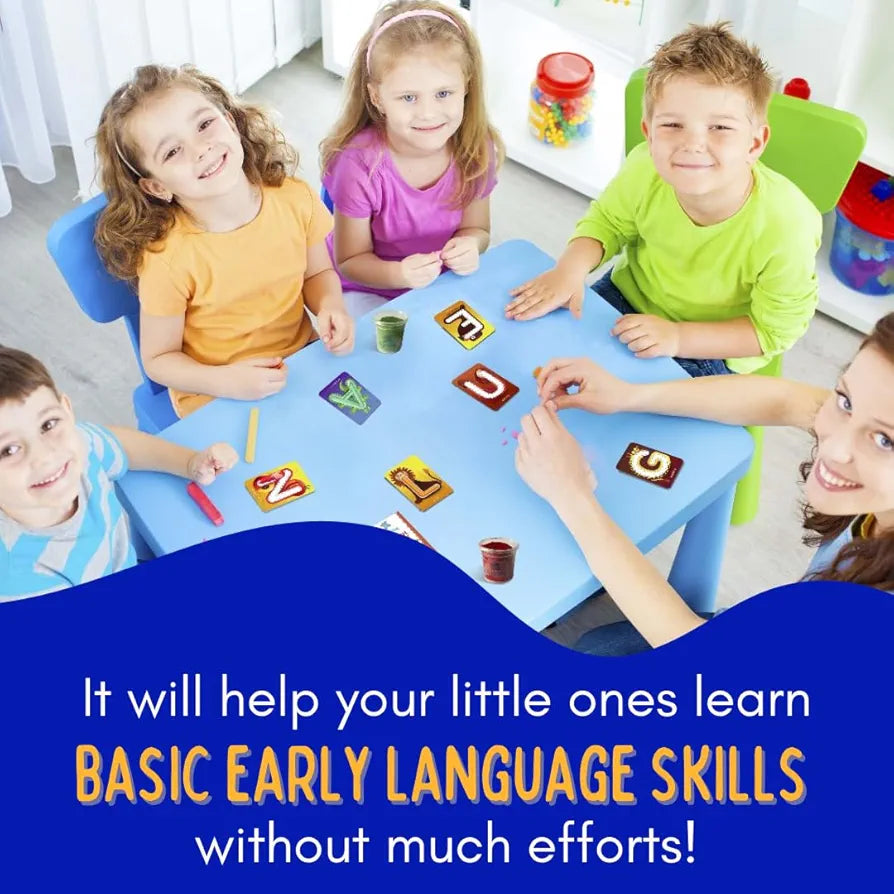 Dough Art Kit for Kids | DIY Kit | Long Lasting Soft & Non-Toxic Clay | 32 Cards with 4 Colours - Alphabets