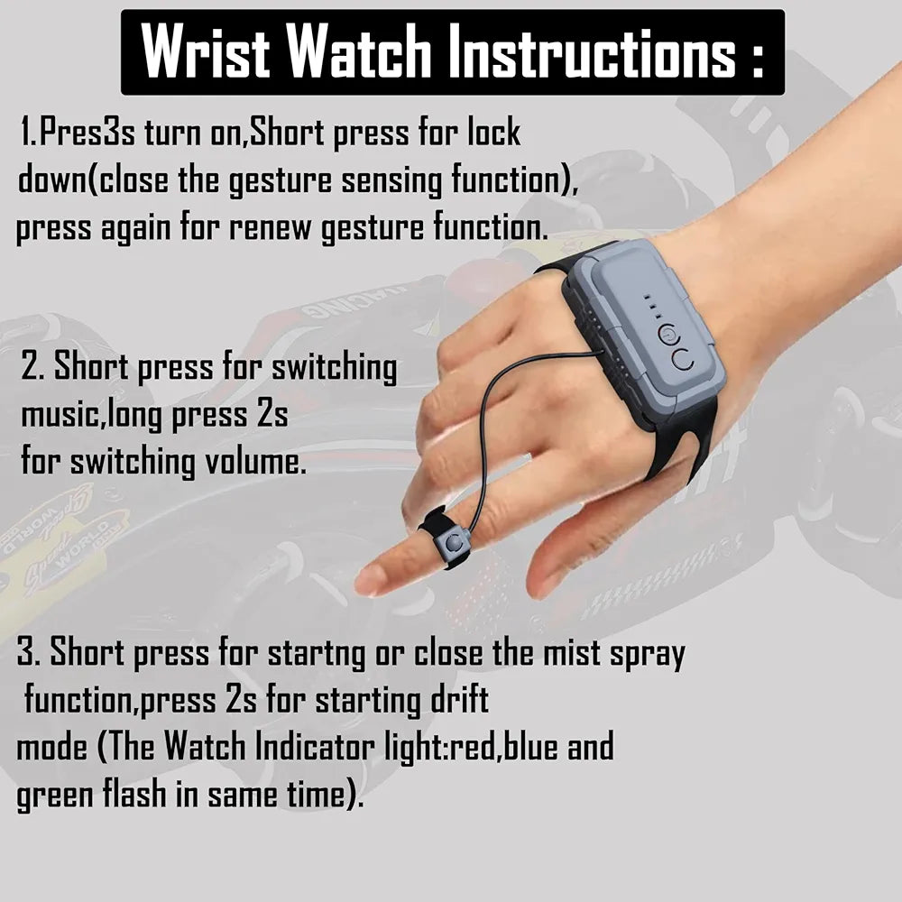 Experience the thrill of high-speed racing with this advanced RC 4x4 Formula F1 drift car. Featuring innovative hand sensor gesture control, this 1:14 scale vehicle responds to your movements for intuitive, hands-free operation. The 2.4GHz technology ensures stable, lag-free performance while the 360° rotation capability delivers jaw-dropping stunts and spins. Watch it light up with three dynamic LED lights and groove to built-in music as it drifts across any surface. With realistic smoke effects and powerful 4x4 traction, this racing machine handles challenging terrain effortlessly. Perfect for kids aged 4 and up, as well as adult enthusiasts, it combines cutting-edge features with endless entertainment. Whether you're racing competitively or performing tricks, this remote control car transforms playtime into an unforgettable adventure.